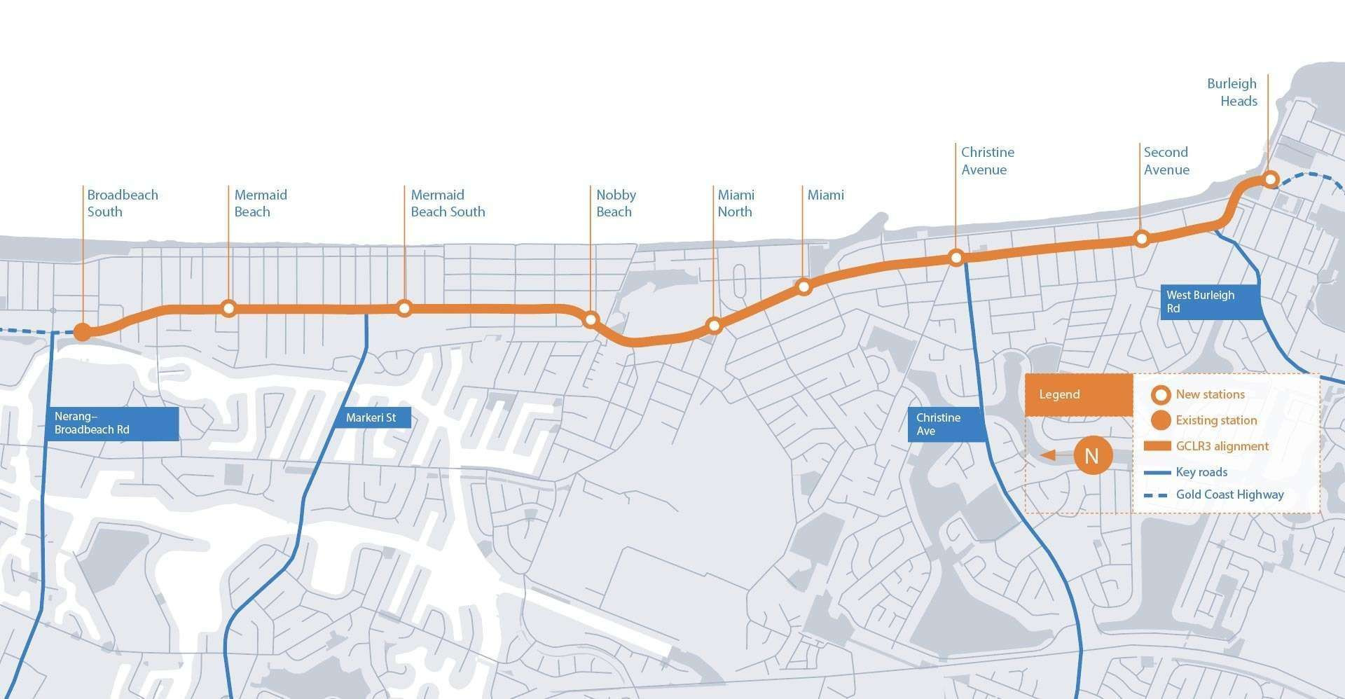 Following on from successful delivery and operation of Stages 1 and 2, the third stage of the project involves a southern extension from Broadbeach South to Burleigh Heads using the existing road transport corridor.